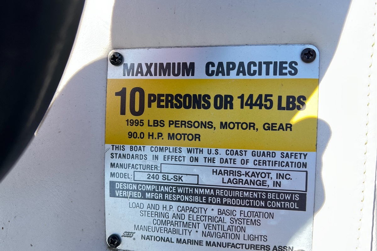 - Safety gear: 10+ USCG-approved life jackets (including children's sizes), throwable flotation device, marine fire extinguisher, anchor with rope