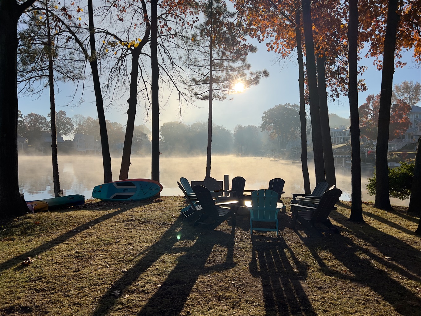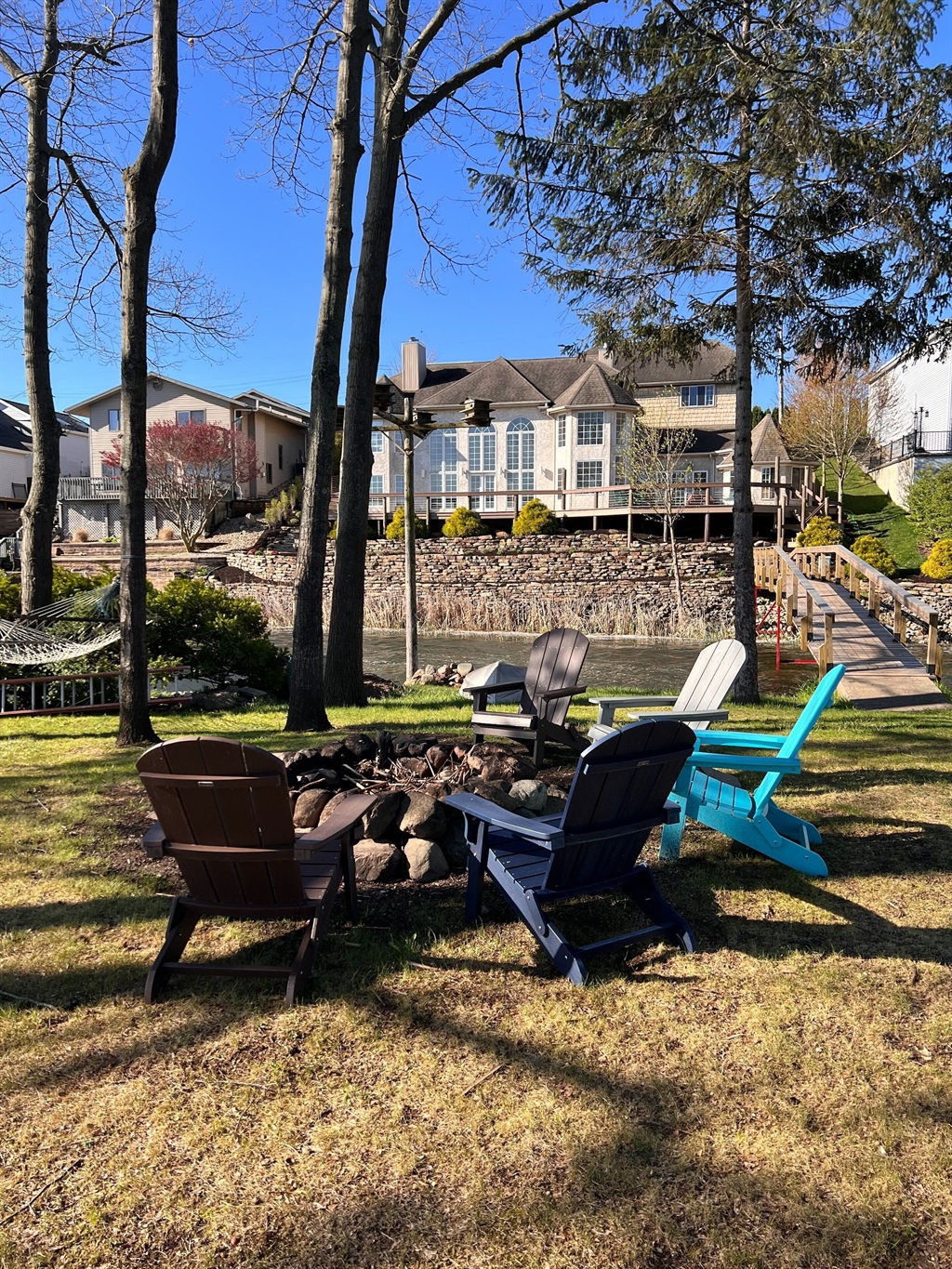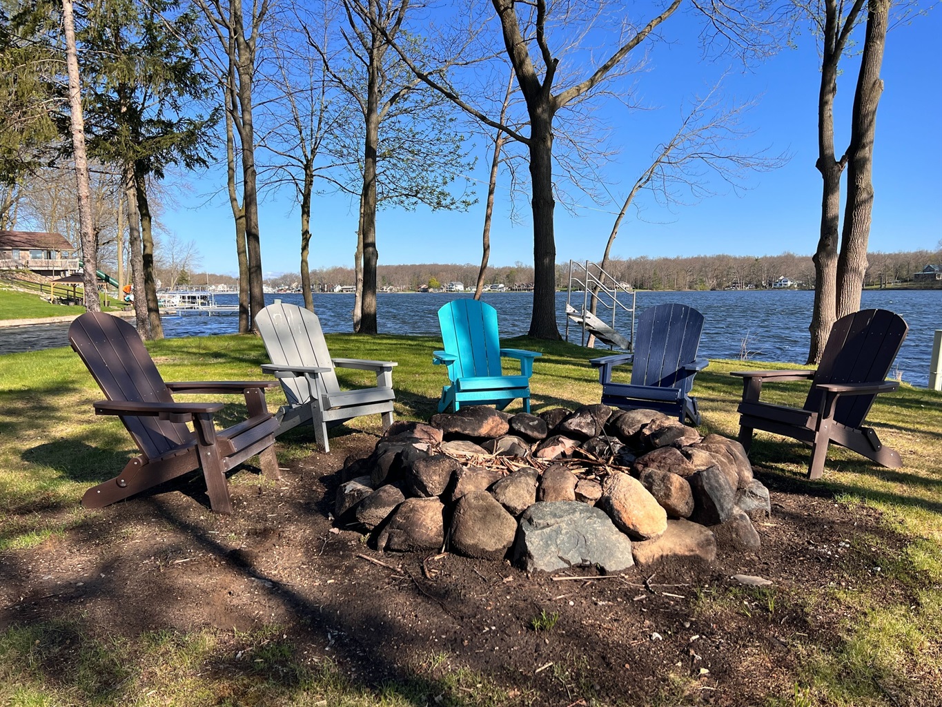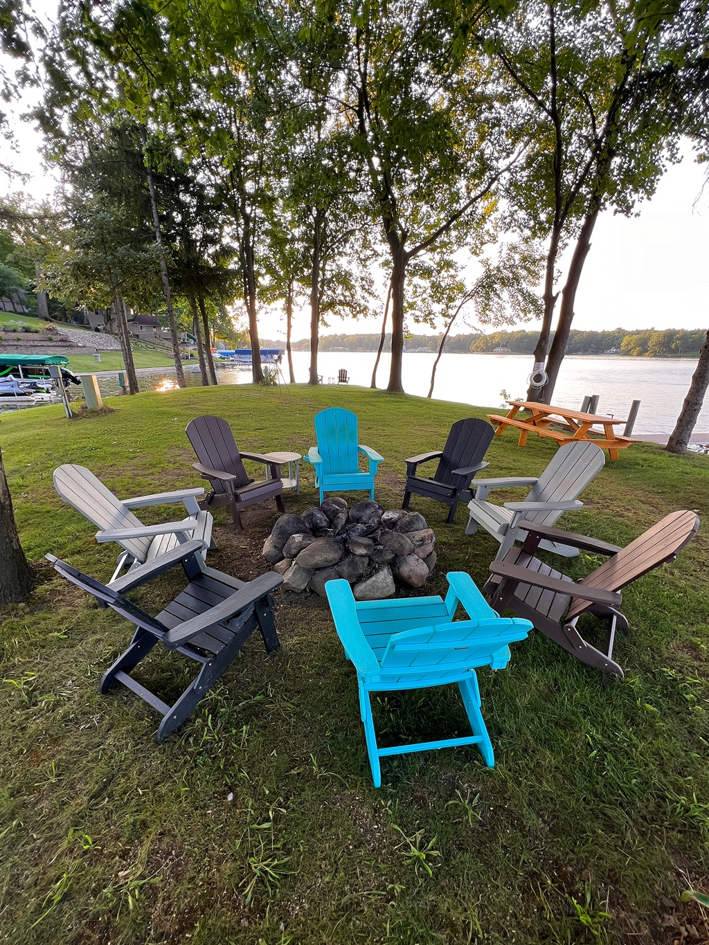 • Private island with fire pit, 10 Adirondack chairs & picnic table
