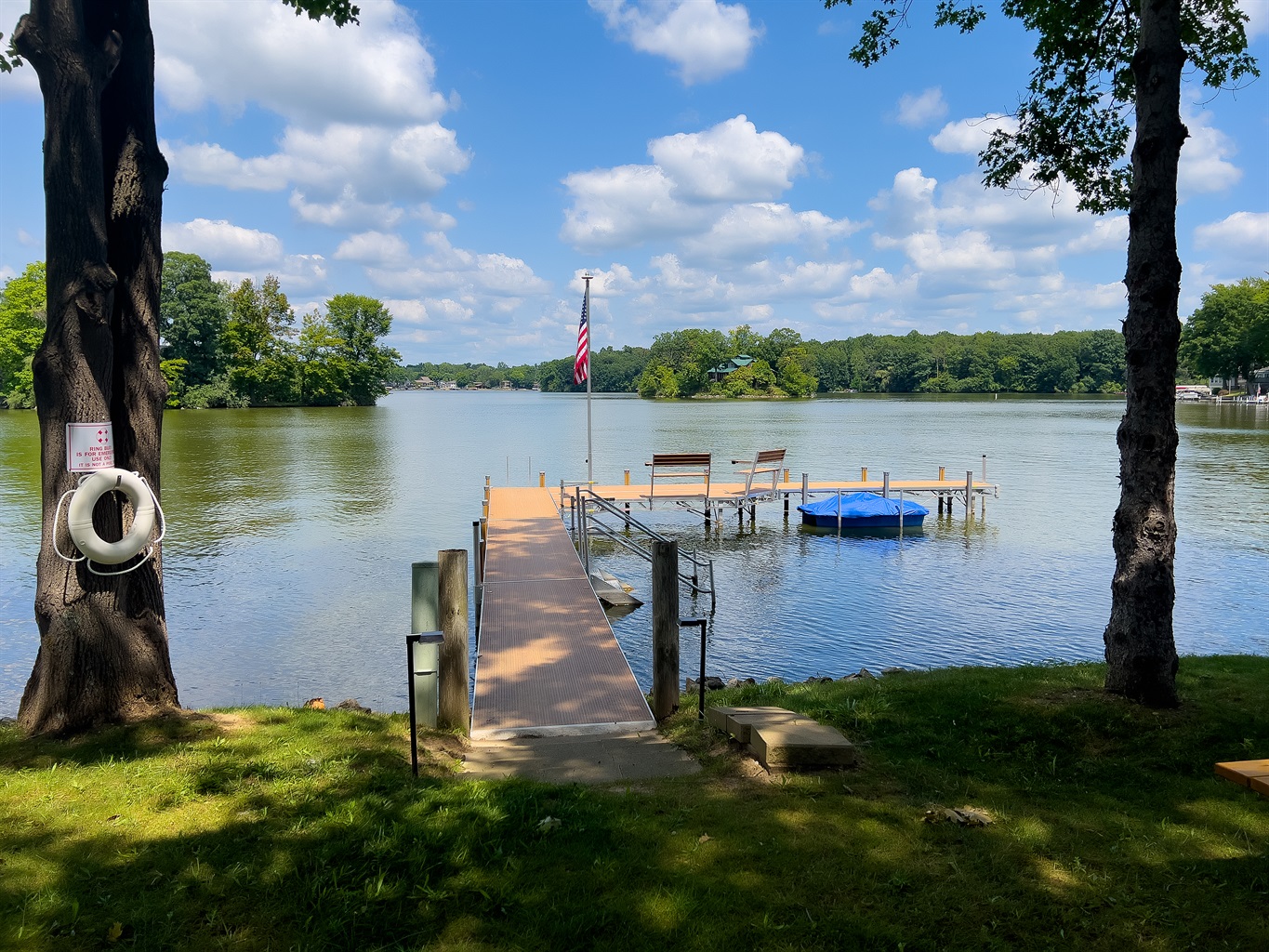 • 84' pier with benches; space for 2–3 boats